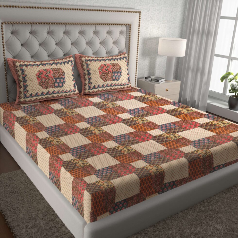 Add a royal charm to your bedroom with this Rajasthani Traditionally Printed Cotton Double Bed Bedsheet. Crafted from soft and breathable pure cotton, it features vibrant ethnic prints inspired by Rajasthan’s rich artistry. Comes with 2 matching pillow covers, ensuring comfort, elegance, and long-lasting freshness in every wash.