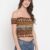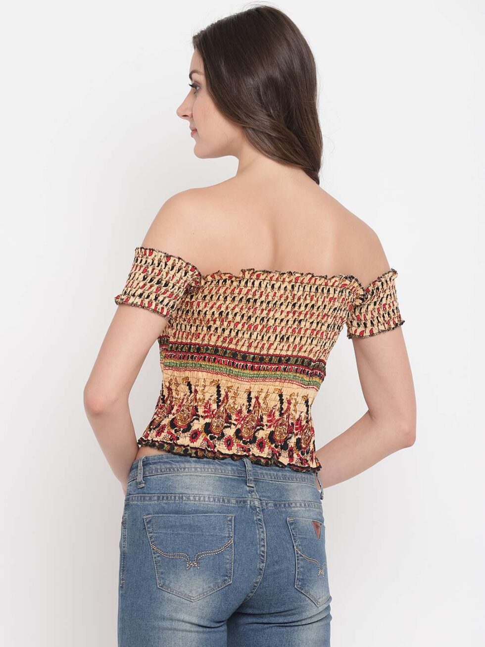 Women’s Rayon Printed Off-Shoulder Smocked Crop Top Short Sleeve Casual Styles Tank Top (FREE SIZE) Multi4